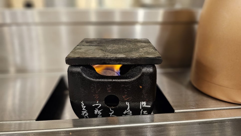 자리에 앉으면 개인화로와 함께 필요한 물품들이 앞에 있었습니다.